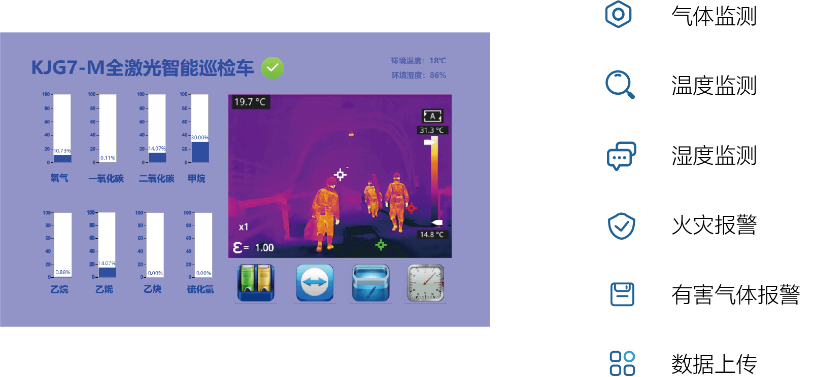 主要應用場景:適用于膠輪車能下礦的斜井,降低瓦檢工作強度,提升工作效率,提升數據準確性,提高數據時效性,更有利于保障安全生產。