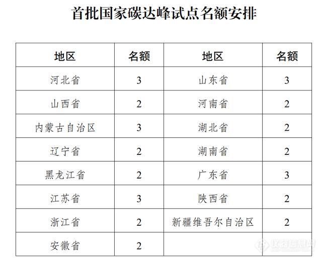11月6日,國家發展改革委對外發布《國家碳達峰試點建設方案》,按照國家碳達峰碳中和工作總體部署,在全國范圍內選擇100個具有典型代表性的城市和園區開展碳達峰試點建設,統籌考慮各地區碳排放總量及增長趨勢、經濟社會發展情況等因素,首批在15個?。ㄗ灾螀^)開展碳達峰試點建設,共計35個名額。