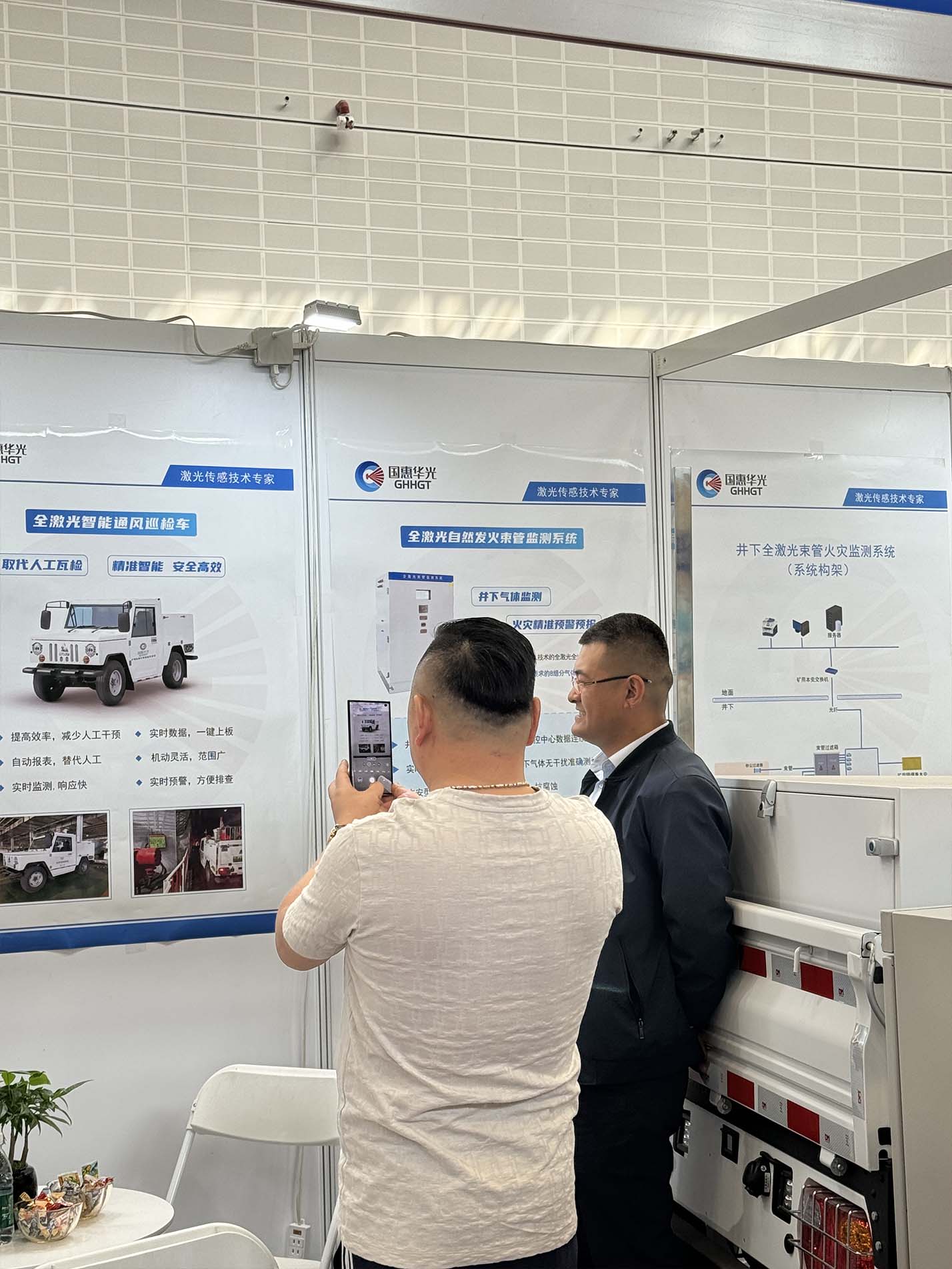本次展會,國惠華光展出了“全激光智能通風巡檢車”“全激光自然發火束管監測系統”兩大核心產品,吸引眾多業內伙伴前來咨詢探討,客戶們對我司的產品表現出了濃厚的興趣,并給予高度的評價,現場熱鬧非凡。